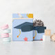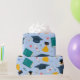 En söt liten penguin som bär en studenten-gåva och som innehar ett examensbevis. Med troféer, bokar och en studentmössa.