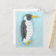 En Cute penguin med vismisk trim och rosa punkter ser ut över en blå isig bakgrund.
