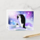 Fotovykort i fars dag med pappa och baby penguin i norra ljus och snöbakgrund