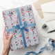 Penguiner i Santa Hats Winter Scene Grått Mönster Presentpapper