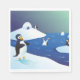 Penguiner har mycket roligt på isen och i vatten. Den här designen ser ut att vara effektiv på dessa Pappra servetter