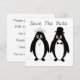 Penguins designinbjudan bröllop spara datum som du kan anpassa med bröllop-informationen och sedan skriva ut den och skicka den till dig eller ladda ned den omedelbart. Om du behöver hjälp med att anpassa kontaktar du oss genom länken på den här sidan. Penguins design personlig bröllop spara datum-inbjudan som du kan skriva ut eller ladda ned direkt