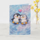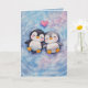 Penguins Float In Love Sweet Watercolor Valentine Kort