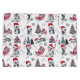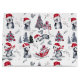 Söta penguiner i röda tomter på vinterscenen, inklusive Julgranar,, träd, poinsettias, gräs grenar och kvistar med bär och en fullt gåvor till alla små pingviner.