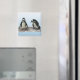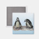 Den här magneten har två adaterande afrikanska Penguins som står på en klippande ledtråd. De är vattenlevande, färglösa fåglar vars vingar har blivit flippor. Var och en har svarta rand och svarta fläckar på bröstet. Mönster på fläckar är unikt för varje penguin, precis som mänskliga fingeravtryck. De har rosa körtlar ovanför ögon och rosa och svart fötter.