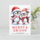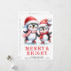 Låt de här söta skaterna av penguin i rödtomten, halsdukar och figur-skridskor hjälpa dig att skicka dina kära till önskemål och hälsning. Det här festliga vita och röda julkortet i ett modernt minimalistiskt stil med texten "Merry & Bright" har en malltext där du kan skriva hälsning, familjen namn och året. På baksidan finns det en kalender för 2026 (Söndag till lördag) som gör korten praktiska för hela året.
