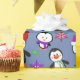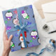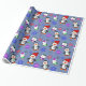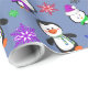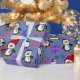 Beklagligt röd, grönt, lila, blå snöflingor och penguiner papper julomslutning i Helgdag.
