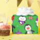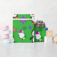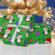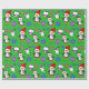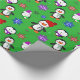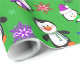 Väl rött, grönt, lila, ljusblått snöflingor och penguin papper julomslutning i Helgdag.