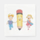 Penna och barn i back to school Tecknad Lycklig Pappersservett