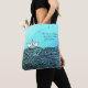 Aquamarine Tote-väska med penndragen papper båt. Det är ingen äventyr om du vet vart du ska... Ord och färg kan anpassas.