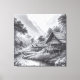 I den här detaljerade pennskissen fångas ett bergskaps fridhet. En charmerande hut, som är kapslad bland vildblommor, bask i det varma solljuset. En kristallklar flod vind sig genom förgrunden och tillför en rörelse och ett liv till den fredliga scenen. Användan av ljus och skugga skapar djupet och dimensionen, teckning i detta idylliska bergslandskap.