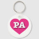 Den här nyckelkedjan har ett pulserande shock rosa som innehåller det feta, vita, övre fodral brev PA, officiellen förkortningen Pennsylvania, nyckelstenstillståndet.