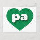 Det här vykortet har ett dynamiskt hjärta för grönt som innehåller det fet, rundade, vita nedre fodral brev pa, en lekfull version av förkortningen för Pennsylvania, nyckelstenstillståndet. Baksidan av vykortet är tom och väntar på anpassningsbarnas text eller handskrivna känslor.