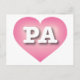 Detta vykort har en lugn, coola och ett insamlat rosa hjärta med ett vitt tvättat centrum som innehåller den feta vita övre parentesen för fodral brev, officiellen förkortning för delstaten Pennsylvania, nyckelstenstillståndet. Baksidan av vykortet är tom och väntar på dina handskrivna känslor eller anpassade texter.