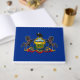 Denna utformning är utmärkande för Pennsylvanias statlig flagga, som officiellt kallas Pennsylvanias samvälde. Flagga antogs för första gången 1778 och den jackar Pennsylvanias arm, ett statssymbol för officiellen. Mottot "Virtue, Liberty and Independence" visas också. Ovanför jackat av arm är ett örn, som är avsett att representera Pennsylvanias lojalitet mot Förenade Stater. Pennsylvanien är verkligen ett av de 13 ursprungliga stater som grundade unionen. De två folkrikaste städerna i delstaten Pennsylvania är Philadelphia och Pittsburgh. Den statliga huvudstaden är emellertid Harrisburg.