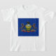 Denna utformning är utmärkande för Pennsylvanias statlig flagga, som officiellt kallas Pennsylvanias samvälde. Flagga antogs för första gången 1778 och den jackar Pennsylvanias arm, ett statssymbol för officiellen. Mottot "Virtue, Liberty and Independence" visas också. Ovanför jackat av arm är ett örn, som är avsett att representera Pennsylvanias lojalitet mot Förenade Stater. Pennsylvanien är verkligen ett av de 13 ursprungliga stater som grundade unionen. De två folkrikaste städerna i delstaten Pennsylvania är Philadelphia och Pittsburgh. Den statliga huvudstaden är emellertid Harrisburg.