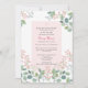 Gröna eukalyptusblad och ömtåliga rosa blommor skapar en vacker design. Del av "Penny Collection".