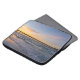 Laptopfodral med vågor som rullar in mot stranden under den gyllene timmen vid soluppgången vid Pensacola Beach Gulf Pier i Pensacola Beach, Florida, USA. Letar du efter fler produkter? Besök min butik: http://www.zazzle.com/timelessmomentsphtgy Fotot togs av Jennifer White med Timeless Moments Photography. Alla bilder är upphovsrättsskyddade.