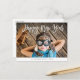 Skicka nyårens önskemål till familj och vänner med den här moderna designen som består av ett vitt penselskript och ett underbart foto.