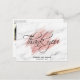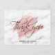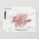 Säg tack till dina gäster med dessa vackra, vänliga, unika vykort. Faux ro guld penseldrag med vackra manusbokstäver tack vare ordalydelsen, lätt grått marmor bakgrund. Anpassa dem genom att lägga till brid- och triomens namn och bröllop eller årsdatum med foto/bild. Kortets baksida innehåller ett foto med valfritt meddelande