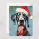 Färgfull och glatt juldesign med Great dane som bär en julhatt.