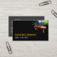 Ett svart täcke med färgstänk är på väg att målas över av en guld-rullpensel. Nära basen är namn "PAINTING SERVICE" med den mobila kontakten. På andra sidan, i ett grått-omslag i mörken, finns kortdetaljer på den lämnat logotypen med en "hemborste" som du kan använda. Bara under logotypen finns ert prestigefyllda namn och kontaktuppgifterna. Det här är ett underbart kort för målare till använda.