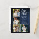 Modern Penselskrift 4 Foto Par Förlovnings Annonsering Spara Datum Brev - Rustik Landlig Blå Trä