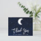Modern penselskrift, himmelsk bröllop tack-kort. Akvarell blå natthimmel med stjärnor och månen.