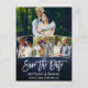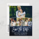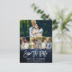 Modern penselskript Rustic Blue Wood 4 Photo Save Date Postcard