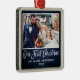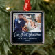 Modern penselskript, Rustic Blue Wood vår första julfoto Bröllop Ornament