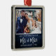 Modern penselskrift, Rustic Blue Wood Vår första jul som Mr. och Bröllop Photo Ornament