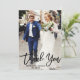 Modern penselskript med fotopatset Bröllop - tackkort - svart skript, bakåtriktad kraft