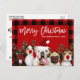 Modern penselskript God jul Star Adsible Funny Cute Hundar Red Play Helgdag Postcard. Valparna och hundar som bär renar öron och röda näsor är bl.a. en pug, bulldog, beagle, labrador och en jack russell skräckare.