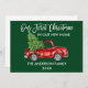 Modern penselskript Vår första jul i vårt nya Flytta för hemmet innefattar Watercolor Vintage Red Lastbil med Julgran - Forest Grönt