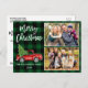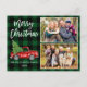 Modern Vintage för vattenfärg i penselskript Red Lastbil med Julgran - God jul Family 2-vykort för foto-Grönt Play Card
