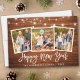 Rustic Wood Push Script 3-fotofamiljkort för Gott nytt år med String Ljus