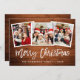 Rustic Wood Push Script 3 Photo Family God jul-kort
