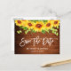 Modern penselskript, solrossolrosgrej i vattenfärgen Blommigt, spara Förlovningens anteckningsvykort - Rustic Wood