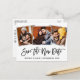 Modern Spara för penselskript Det nya datumet Bröllop sköt upp det nya datummeddelandet Två foto-vykort par 3