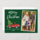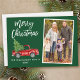 Modern Vintage för vattenfärg i penselskript Red Lastbil med Julgran - God jul Family Photo Grönt Helgdag Card