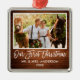 Modern penselskript, Rustic Wood vår första julfoto Bröllop ornament