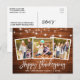 Rustic Wood Push Script 3-fotofamiljkort för Happy thanksgiving med String Ljus