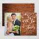 Modern penselskript, Rustic Wood och String Ljus med Mason Burk, med Bröllop och Kärlek Photo Tack, du Card