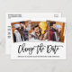 Modern penselskript ändrar datumet Bröllop sköt upp ett par foto-vykort