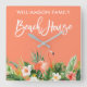 Penselskriptet Tropical Coral Blommigt Beach House Fyrkantig Klocka