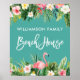 Modern Push Script Tropical Blommigt Beach House Poster med Rosa Flamingo