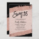 Trendiget ro guld och den svarta söta inbjudan 16 är perfekt för party! Modern faux glitter och ett skript-kalligrafteckensnitt för ett unikt inbjudan. Mönster är platta tryckta illustrationer/grafik - INTE FATUAL GLITTER.