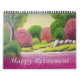 Denna 2016 tvåsidig standardkalender har en röd tråd, en konstnärligt naiv målning med en trädgård med en sten väg, grönt buskar, körsbärsbuskar och färgaden Lycklig Pension på en körsbärsmatad rand under alla månader. Det är en elegant att fira pension och en underbar present till dina vänner och närstående också. Du kan också matcha den med andra personliga eller dekorativa artiklar i Artcor7 på Zazzle.