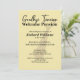 Våra inbjudningar till "Adjö, välkomstpension" är perfekten för att kunna tillkännage ett pension party med stil och lätthet. Lugnens beige bakgrund och förfinade tidsutformning kompletteras med en blandning av skript och serif typsnitt för en aning elegans. All information om party är anpassade, vilket garanterar en perfekt som passar för firande. Missa inte när du skapar en minnesvärd utsändning - anpassa och beställ dina inbjudningar nu!