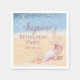 En underbar pension-napkin med party dejt. Konstruktion bestående av en kustsandstrand med vattenfärg och en blå havsbakgrund med segelceller och ljus. Perfektens napkin för ett strandtema pension party. Anpassa med namn, händelse och datum för att göra detta till en unik fråga.